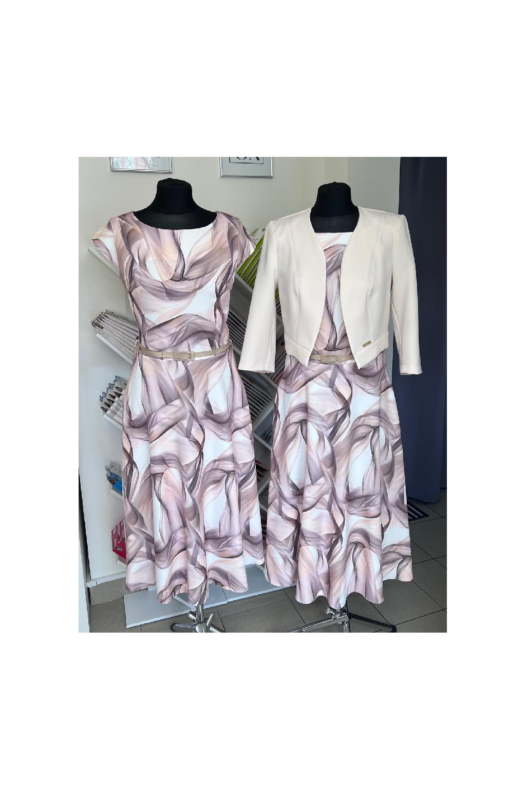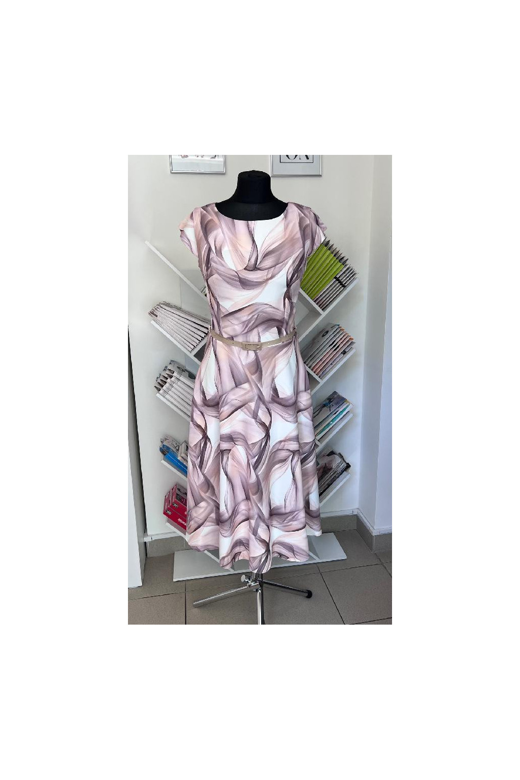 Béžové vzorované midi šaty IVY